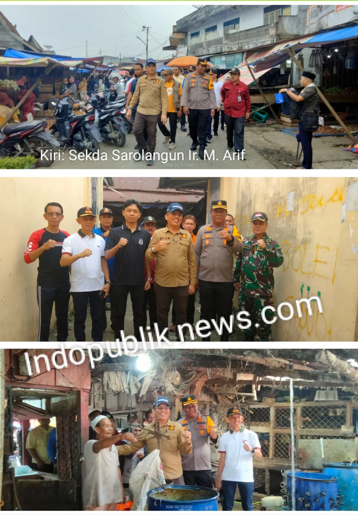 Hal itu disampaikan Sekda Kabupaten Sarolangun Ir. Muhammad Arief., RH. MUM, pada Jum’at, (13/2/2026) usai sidak di Pasar Atas Sarolangun yang dihadiri Wakapolres Sarolangun Kompol Aswindro Indriadi, Pabung Kodim 0420/Sarko Mayor CHK Dedy Afrizal, SH, mewakili Kajari Sarolangun, dan Kepala OPD terkait.